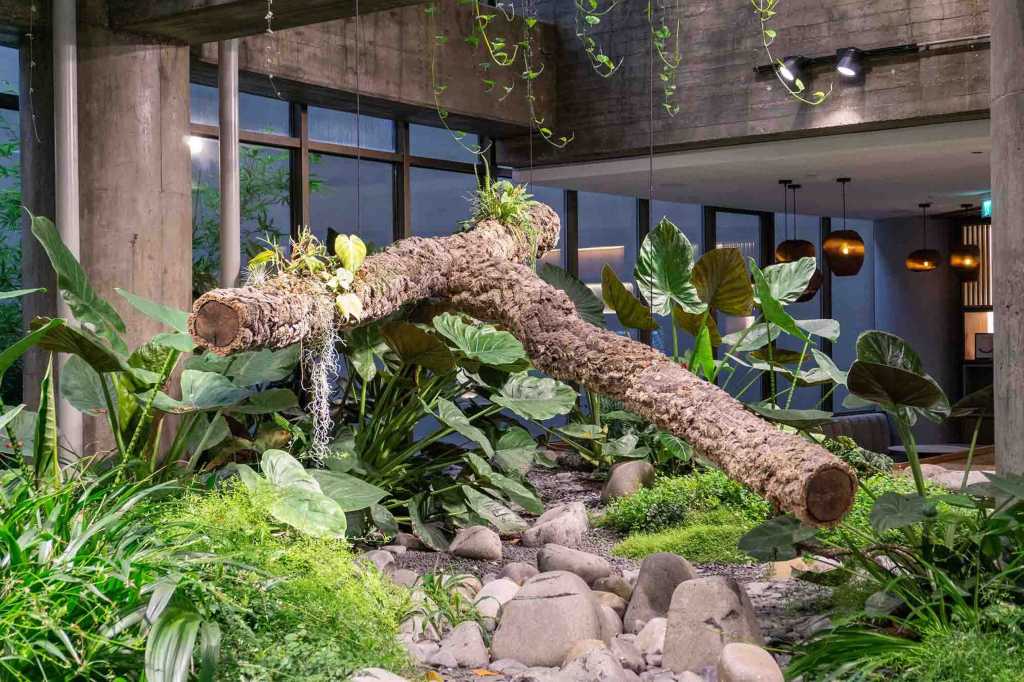 The focal point of the garden is a 5m long suspended branch built of cork weighing no more than 50kg. It has epiphytic plants growing on it and automatic irrigation.